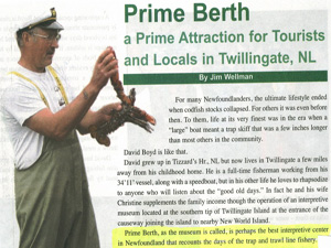 favourite experience in Newfoundland, he always answers, “Prime Berth!” The memory and the peace I felt on your boat that day is something